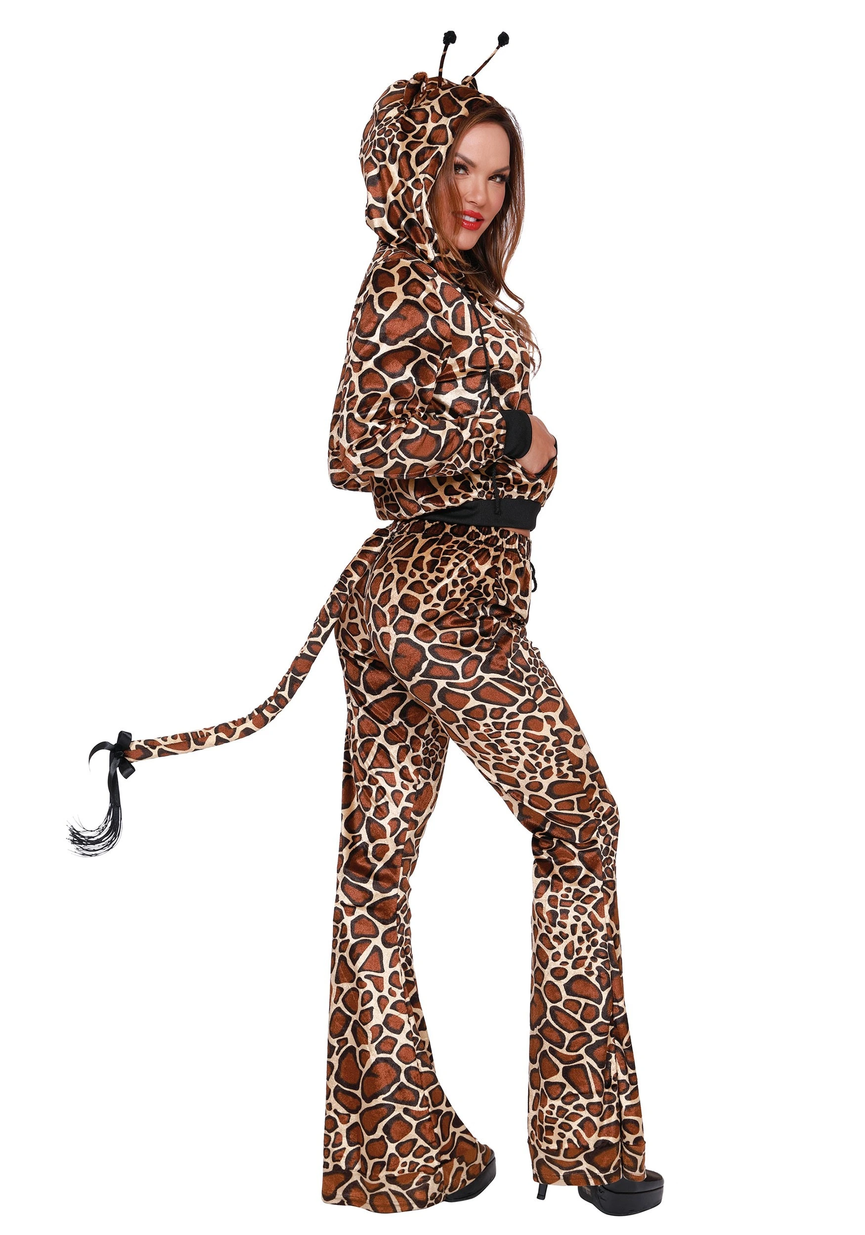 In order to approach a giraffe, you’ll need to blend in—if they do exist, their size could be a problem if they are startled. To blend in we suggest getting yourself a giraffe costume. We have several to offer. If you’re looking for something that offers comfort during your travels, this Women’s Giraffe Costume is an excellent option! In the style of a tracksuit, you’ll find this hoodie and pants set perfect for the demands Giraffe Ambassadors must meet. The 2 pieces feature a giraffe’s spots while the hood of the V-neck top has the horns and ears needed to blend in with the tall animals. Just pin the tail on the seat of the pants to complete your look!