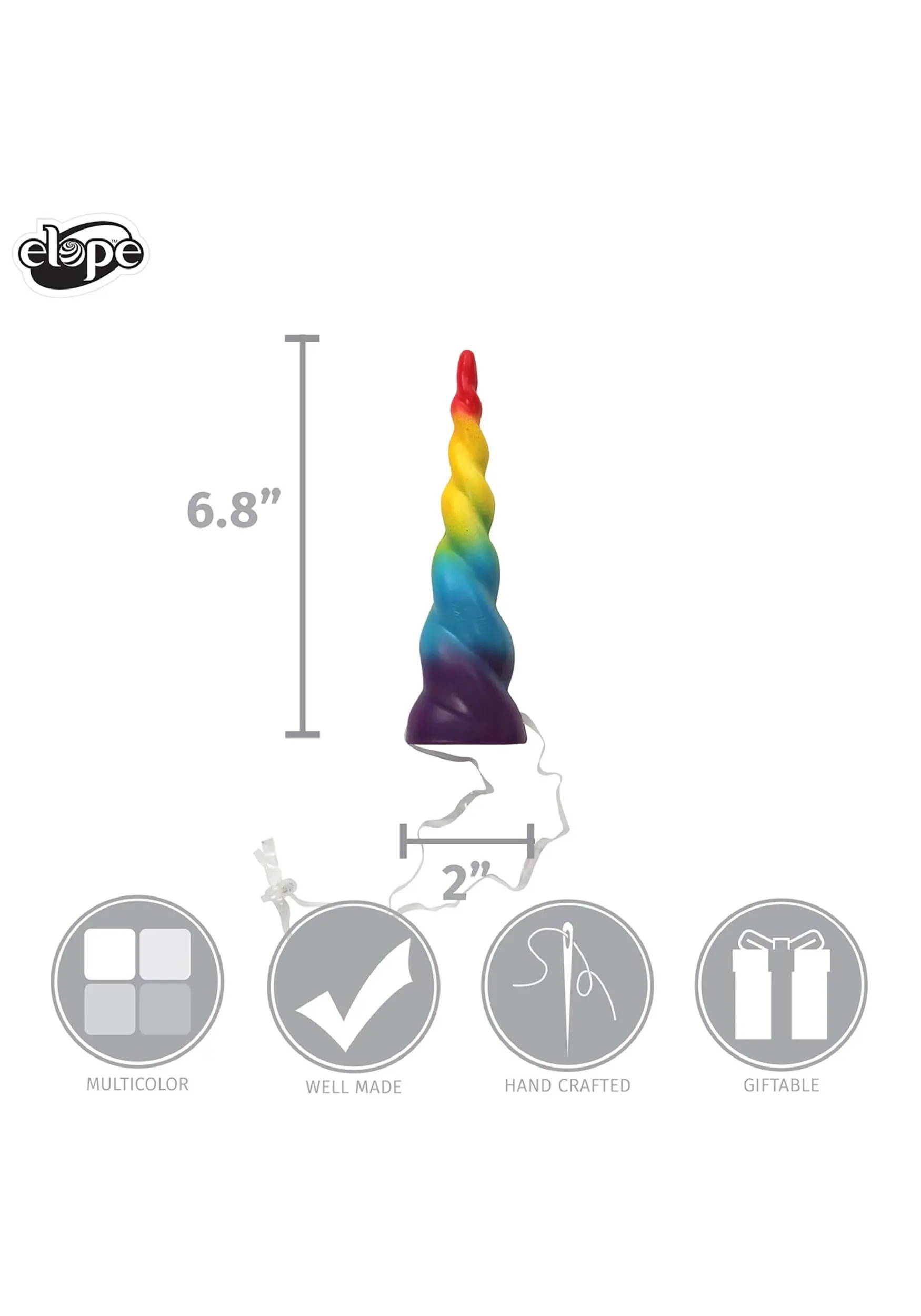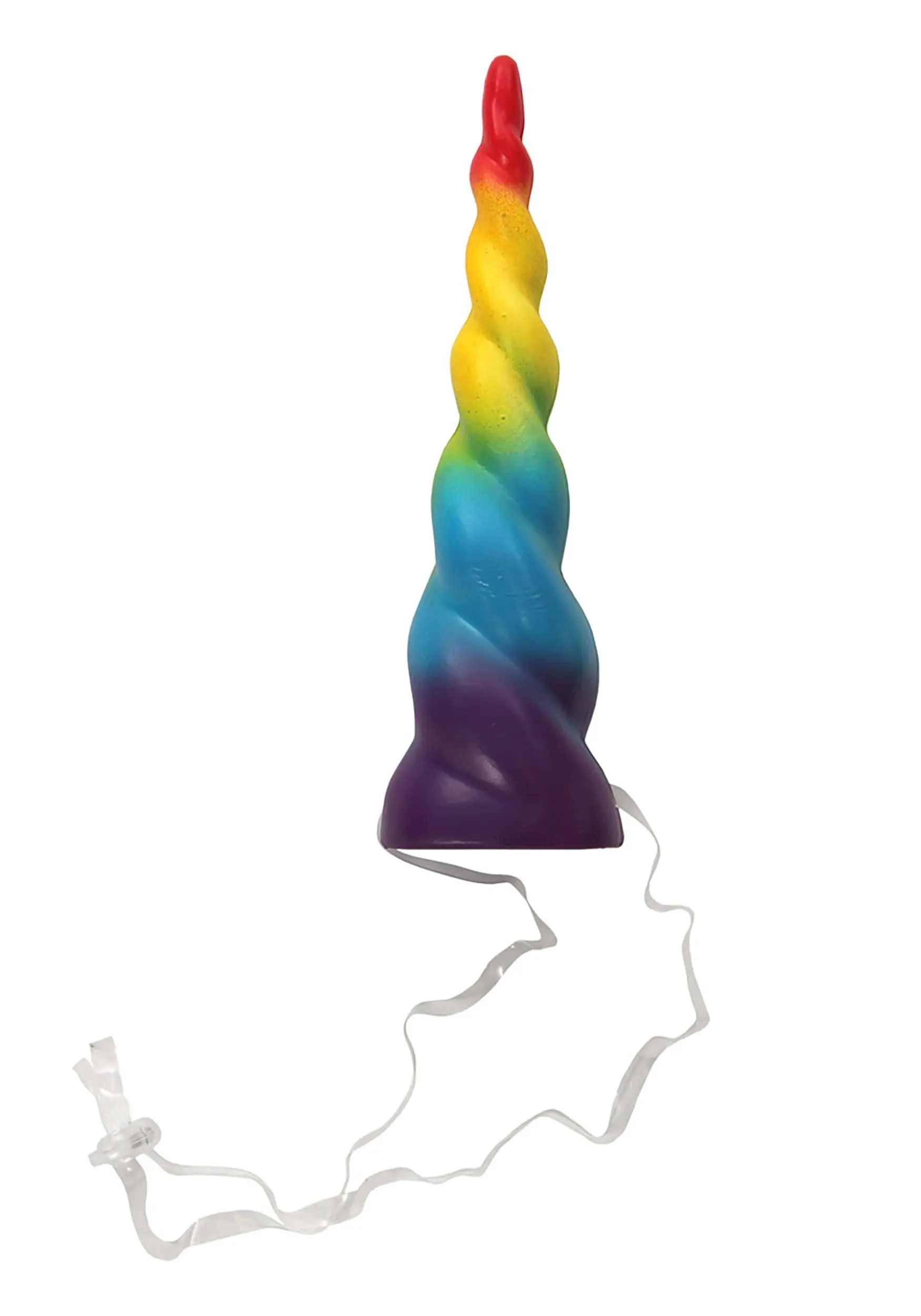 When it comes to mystical creatures, it’s hard to beat the magical, mythical unicorn! Exceedingly rare, and very powerful, these fantastic beasts are symbols of purity and grace, and only occasionally rear their horned heads, appearing on your trapper keeper in middle school, or in a painting on the side of a metalhead’s van, fighting a wizard on top of a rainbow or something. That majesty and magical ability is definitely something many aspire to, and now you have the opportunity to get there yourself! Or at the very least, put on our Rainbow Unicorn Horn, and look the part.