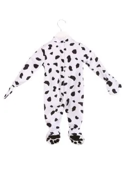 This little onesie is designed by our dog-loving creative team. The suit has spots throughout with a gold bone right under the red collar. It has a tail on the back, right under the hook and loop strips that go up the back. Hook and loop strips also secure the hem of inner legs to keep diaper changes easy. The look is topped off with a separate headpiece that had floppy ears and big puppy-dog eyes.
