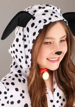 Make this Halloween a marked occasion with this Cozy Dalmatian Jumpsuit Costume! Your child will be ready to hunt for all their favorite Halloween treats in the easy-to-wear hooded one-piece that keeps them as mobile as ever. Made from a dalmatian-spotted Minky fabric that can be worn as a single layer or over another, they’ll have some warmth in the chilly October air. A soft-sculpted tail is attached to the back, while similarly made ears are stitched to the hood, making your child’s transformation complete and hassle-free. Secure the included red collar for extra polish!