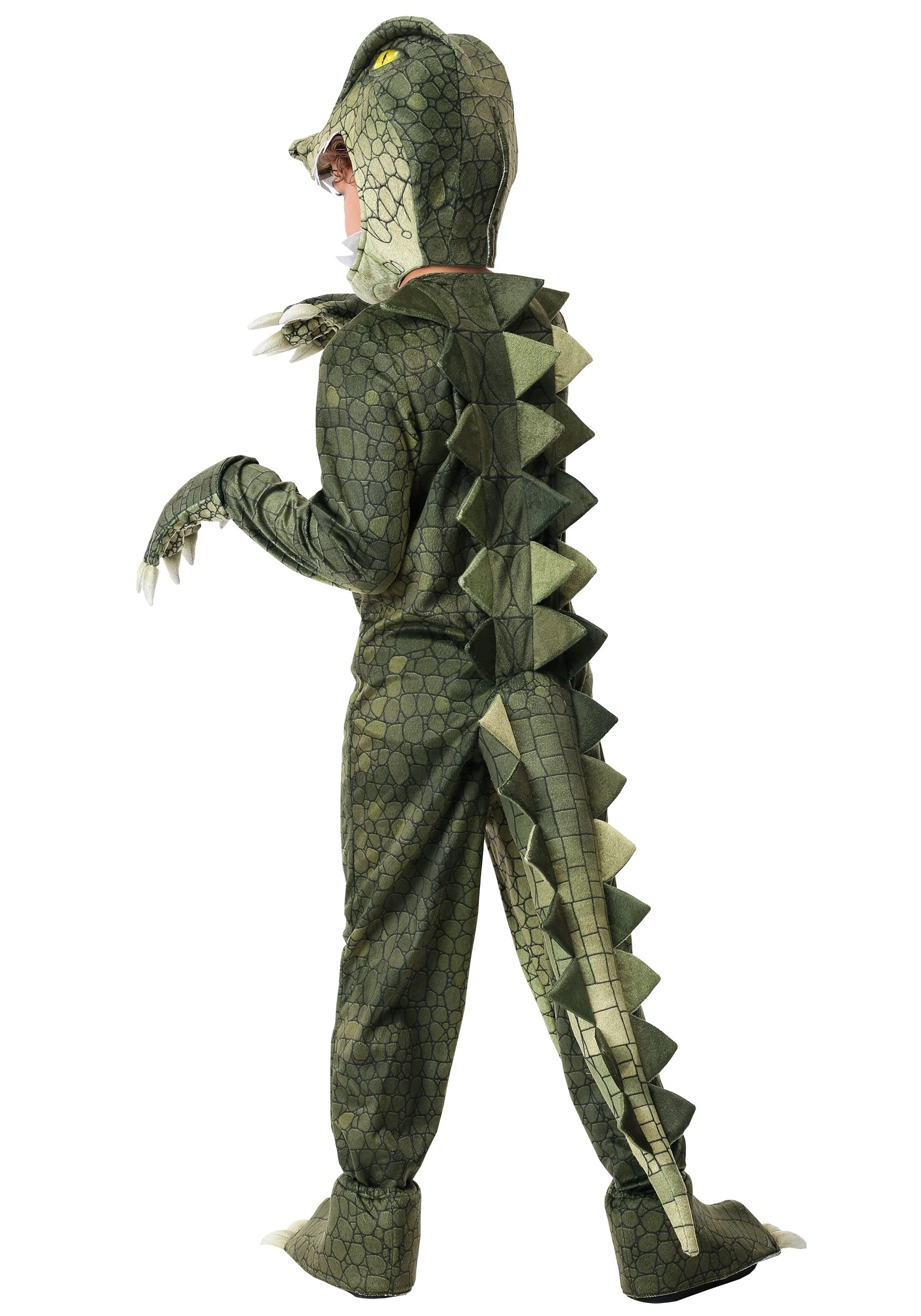 We upgraded gator looks with this Made By Us jumpsuit! The verdant material has an intricate scale pattern that’ll stick out among standard alligator patterns. Mitts cover the hands so they have large claws matching the felt claws on the shoe covers. Spikes fall down the back all the way down to a long stuffed tail. The costume is topped off with a sculpted headpiece with alert yellow eyes and a sharp wide mouth that frames your child’s face.
