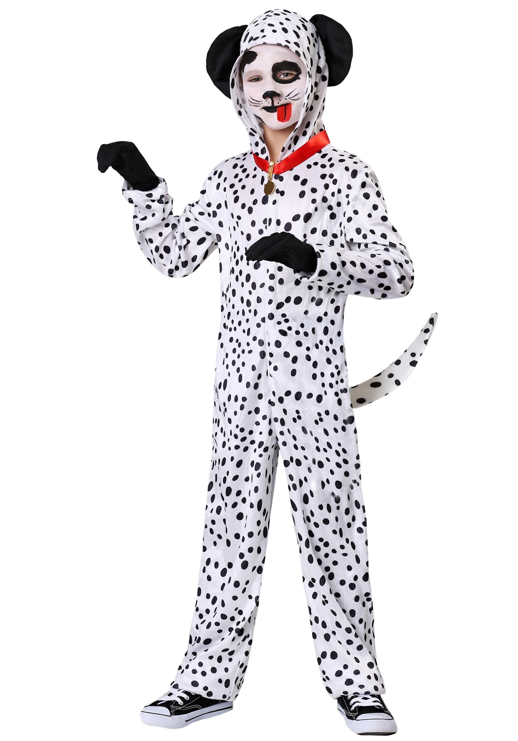 The exclusive Dalmatian costume for boys and girls is a Made By Us costume that’s designed to ensure a fun Halloween adventure. The spotted jumpsuit, with attached hood and rounded puppy ears, also has a tail fastened to the back to get the complete ‘Fido’ look. Finally, an included red collar serves as the only pop of color on the otherwise all black and white costume.