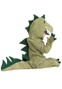Bring some prehistoric fun to your next costume party with this Infant T-Rex Costume. Other parents dress their kids up in cuddly costumes like bunnies and marshmallows, but you don’t have time for that fluffy nonsense. It’s a predator-eat-prey world, and you’re going to make sure your kid is on the top of the food chain thanks to this Infant T-Rex Costume. The exclusive costume is 90 percent polyester, 10 percent corduroy and fleece fabrics. The green jumpsuit has stuffed fleece scales down the back and an attached tail that also has scales. There are mitts sewn onto the sleeve cuffs, which can fold back to reveal hands, along with matching booties. Both the mitts and the booties have ferocious green claws. The headpiece fastens with a hook-and-loop fastener under the chin and features a solf-sculpted dinosaur snout, teeth and spikes on the top and the back.