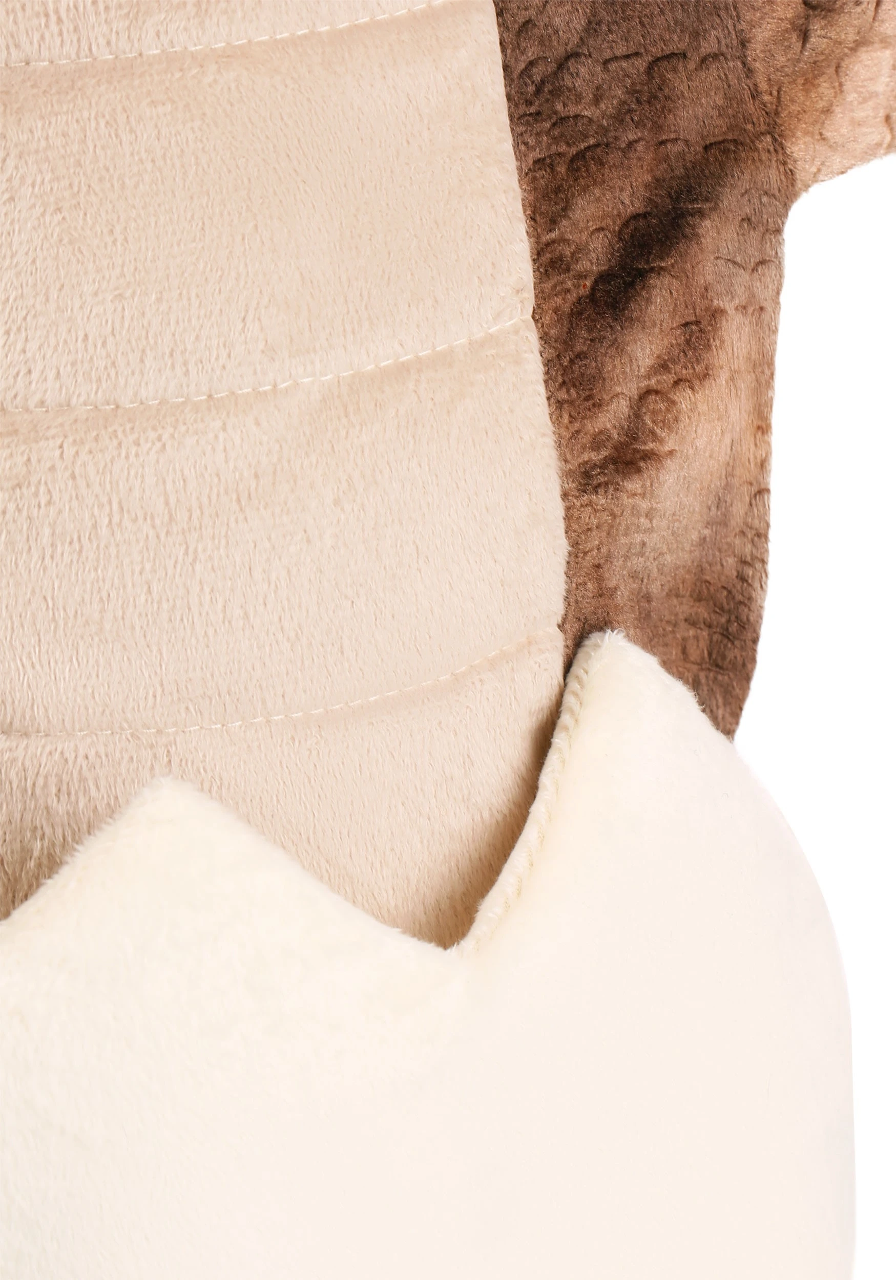 - Soft-sculpted face, horns, crest & eggshell fragment on top of hood