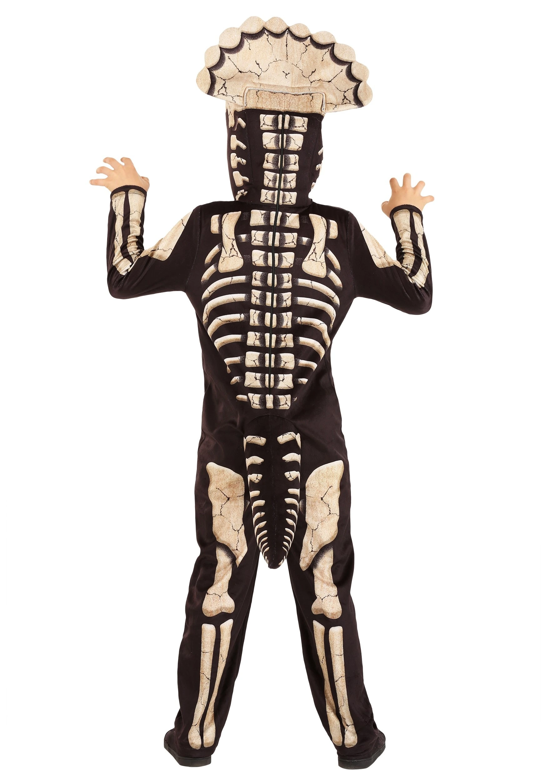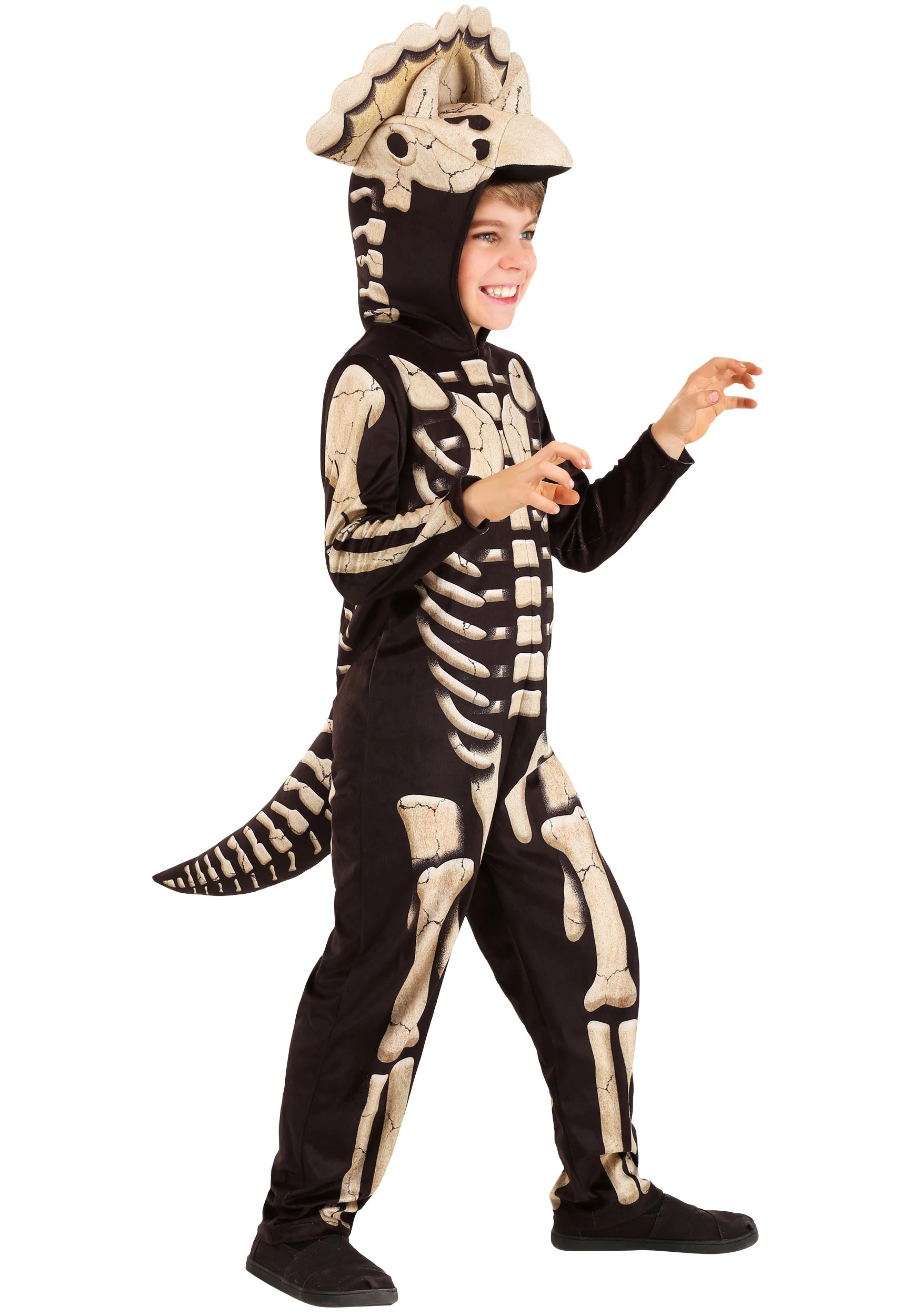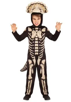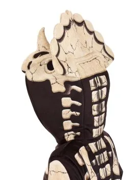 Our resident dinosaur expert worked hard and studied plenty of dinosaur fossils to get this Triceratop Fossile Costume just right! Combining the scary appeal of a skeleton and the colossal presence of a dinosaur, this costume brings both worlds together brilliantly. The costume comes with a black jumpsuit the has dinosaur bones designed into the exterior. The feet end in attached booties and the back of the costume even has a long bony tail, just like the real dinosaur from the prehistoric era. Finally, the hood recreates the look of a Triceratops skull and features sculpted details that will have your child looking a little like a museum exhibit!