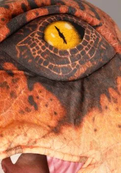 - Top of hood has printed & soft-sculpted velociraptor face