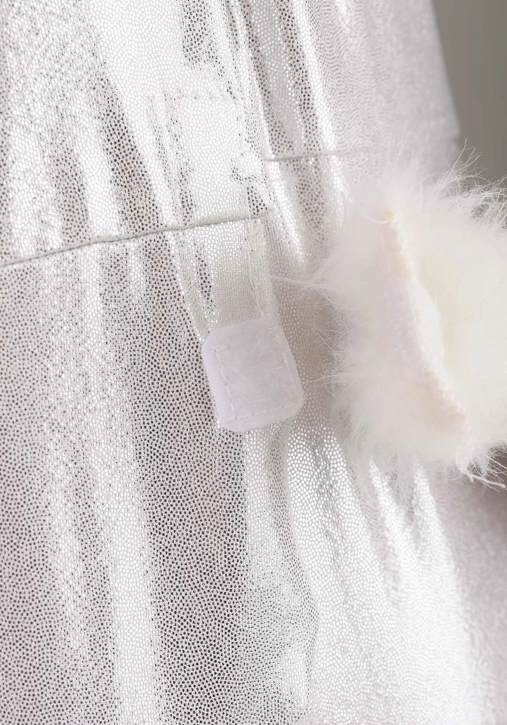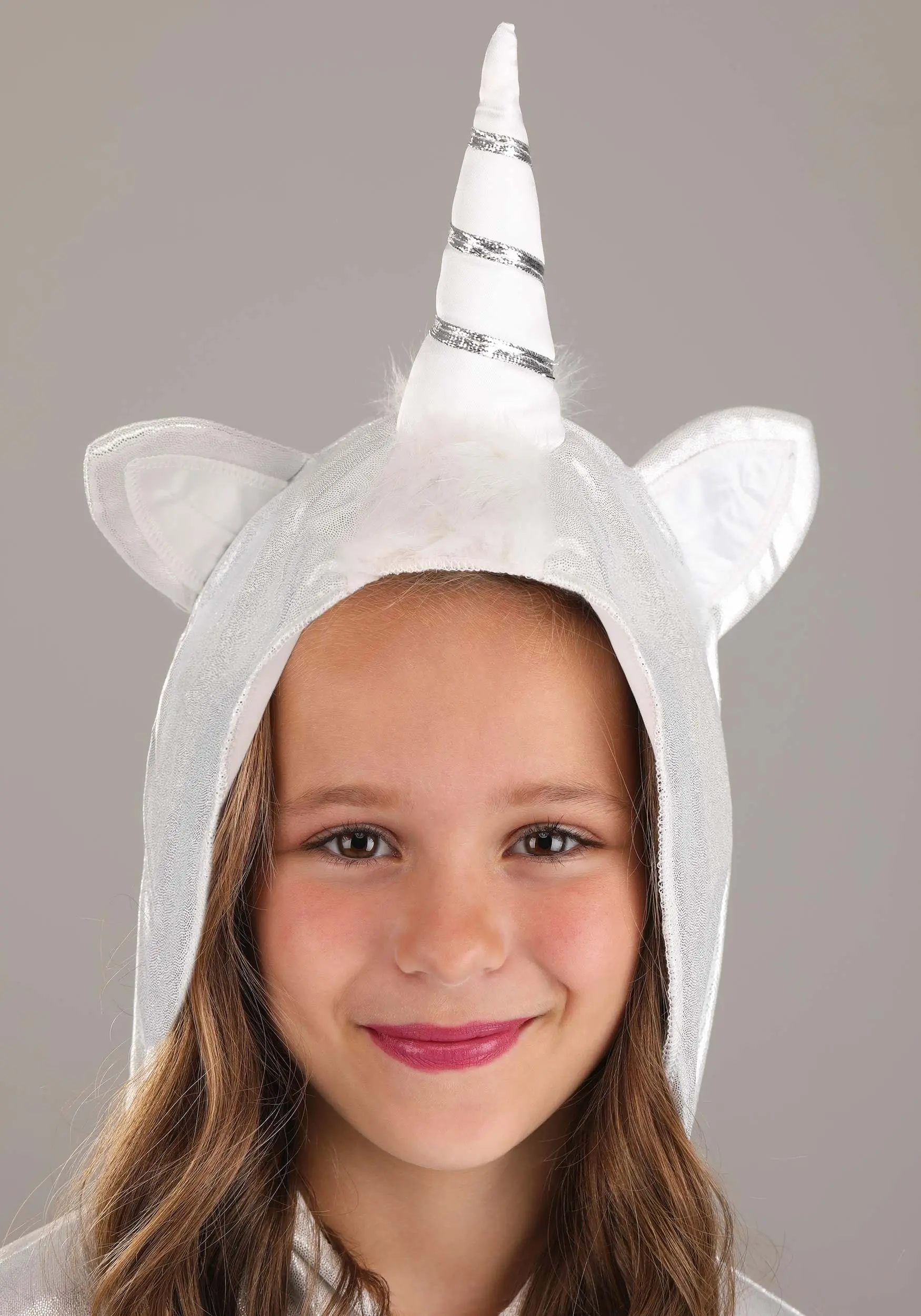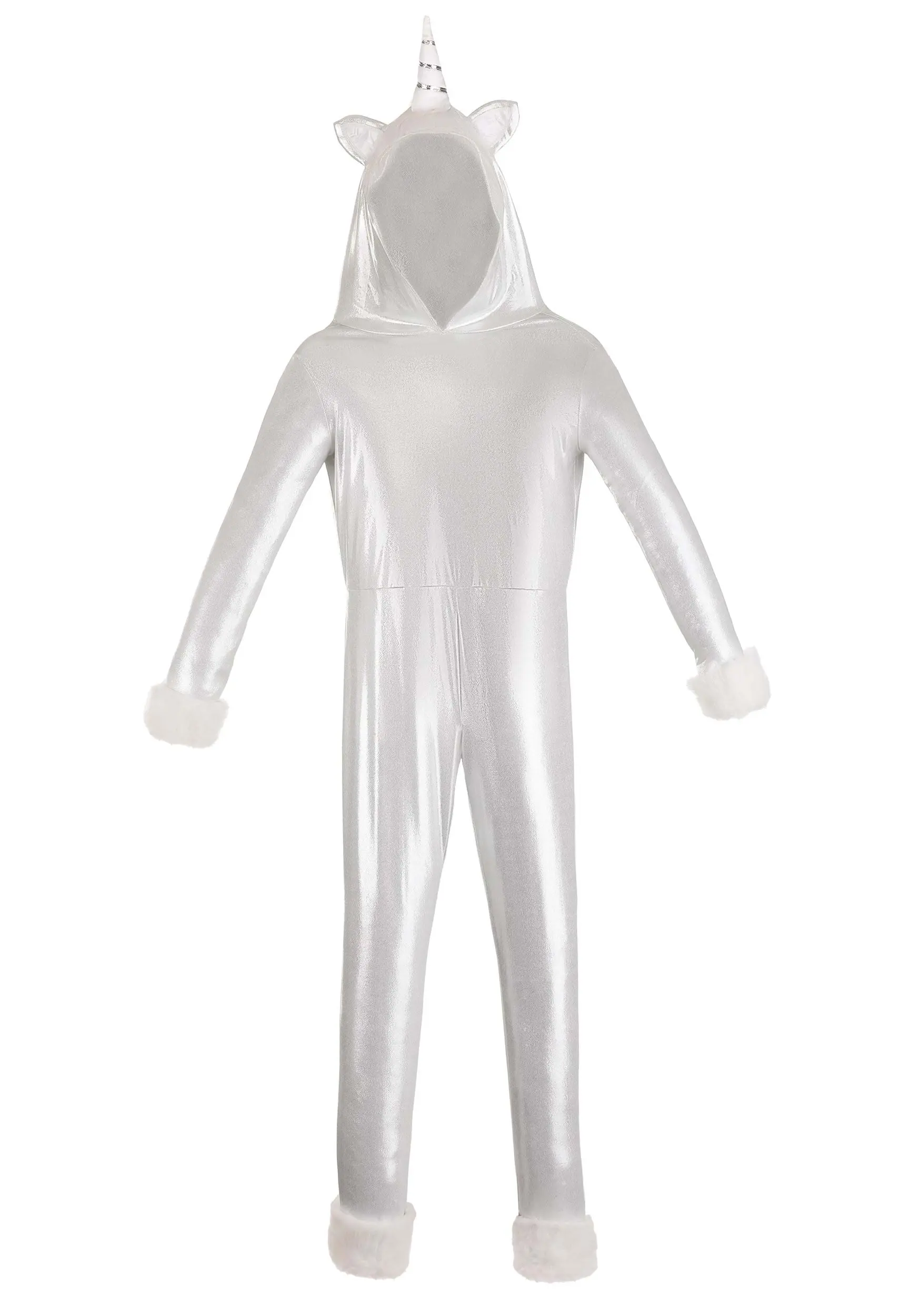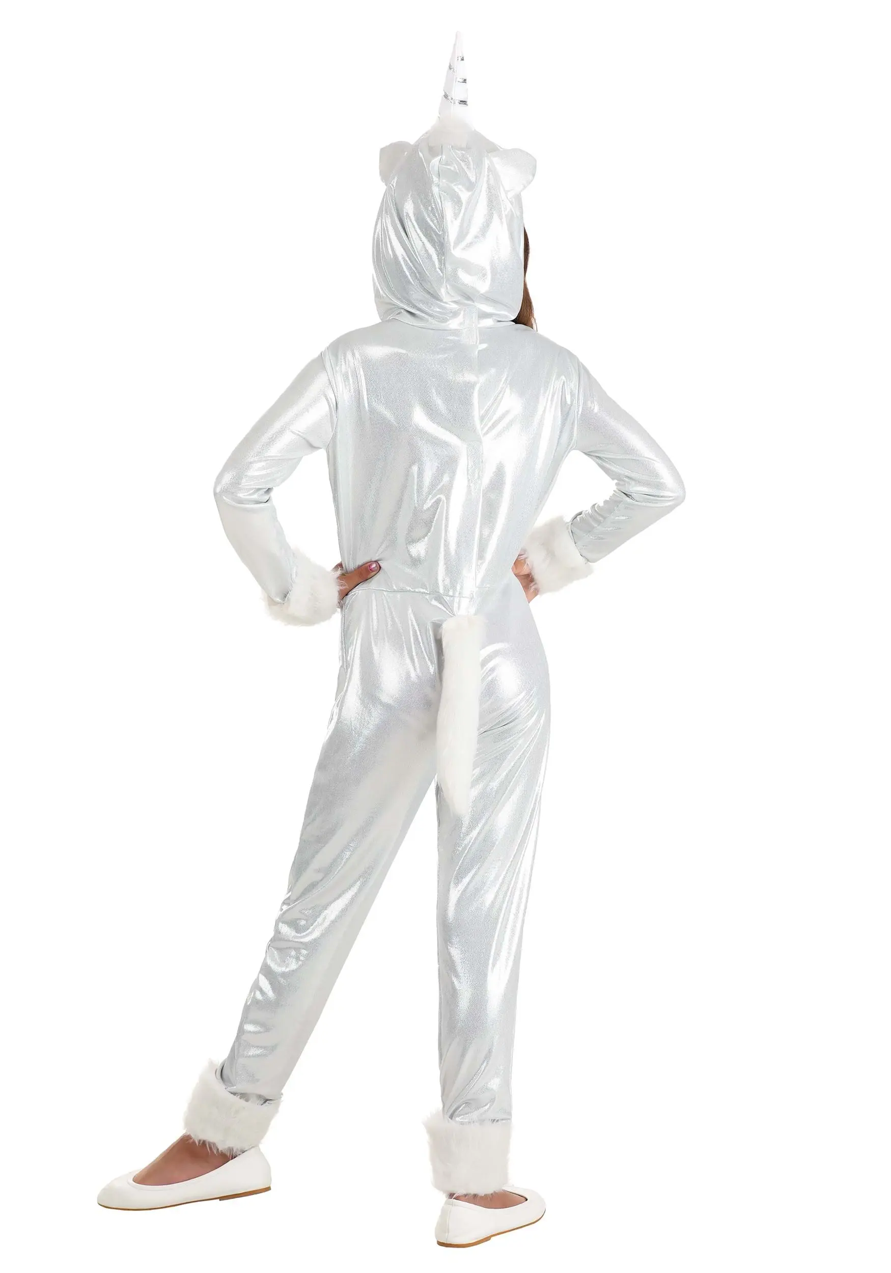 Be truly one of a kind in this exclusive Enchanting Unicorn Costume for Kids! The silver jumpsuit’s material glimmers like stardust and is so shiny you’ll think it’s been specially enchanted for you. It zips up the back and has lovely faux fur on the wrists and cuffs. A sweet little furry tail swishes from the jumpsuit’s seat and can be detached and reattached via a Velcro patch. The attached hood has cute sewn-on ears and a silver-wrapped unicorn horn rising proudly from the center.