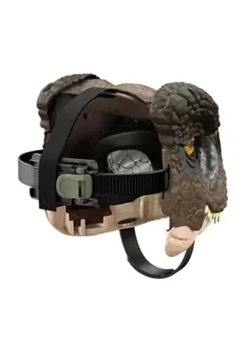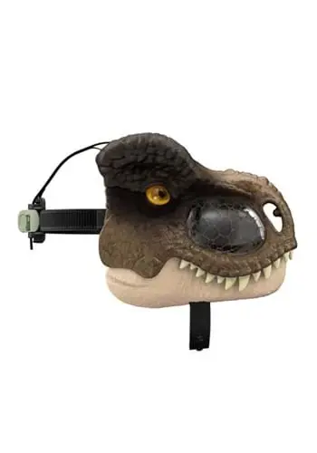 Surprise unsuspecting humans…um, we mean friends…in this officially licensed Kid’s Jurassic World Tyrannosaurus Rex Chomp ‘n Roar Mask! The molded plastic mask covers your entire face and stays in place thanks to straps under your chin and behind your head. It’s shaped like a toothy T-Rex, with clear viewing ports under each eye. When activated, the mouth moves and roars!