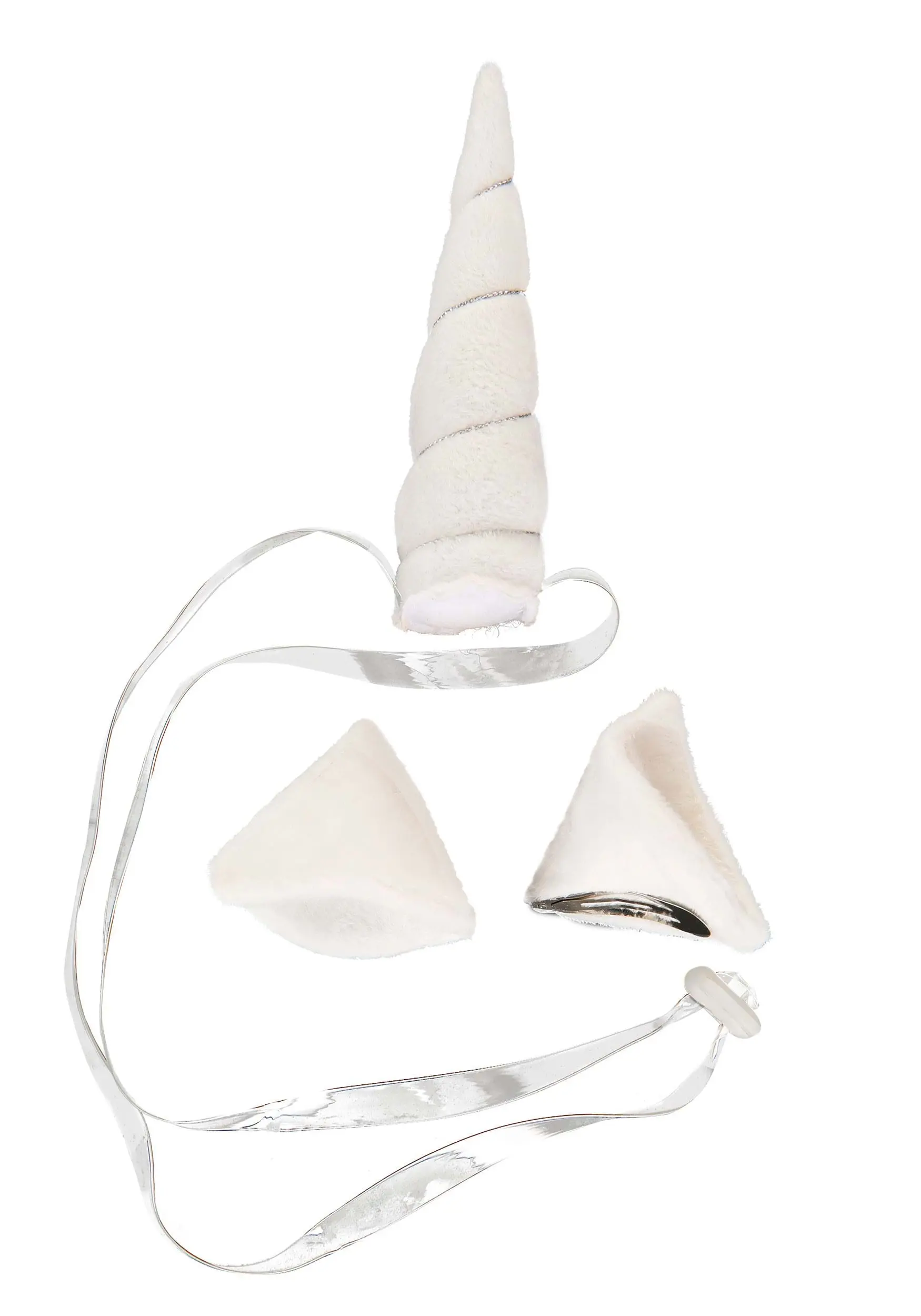 - Stuffed horn is sewn to a clear elastic strap w/ cord lock under chin