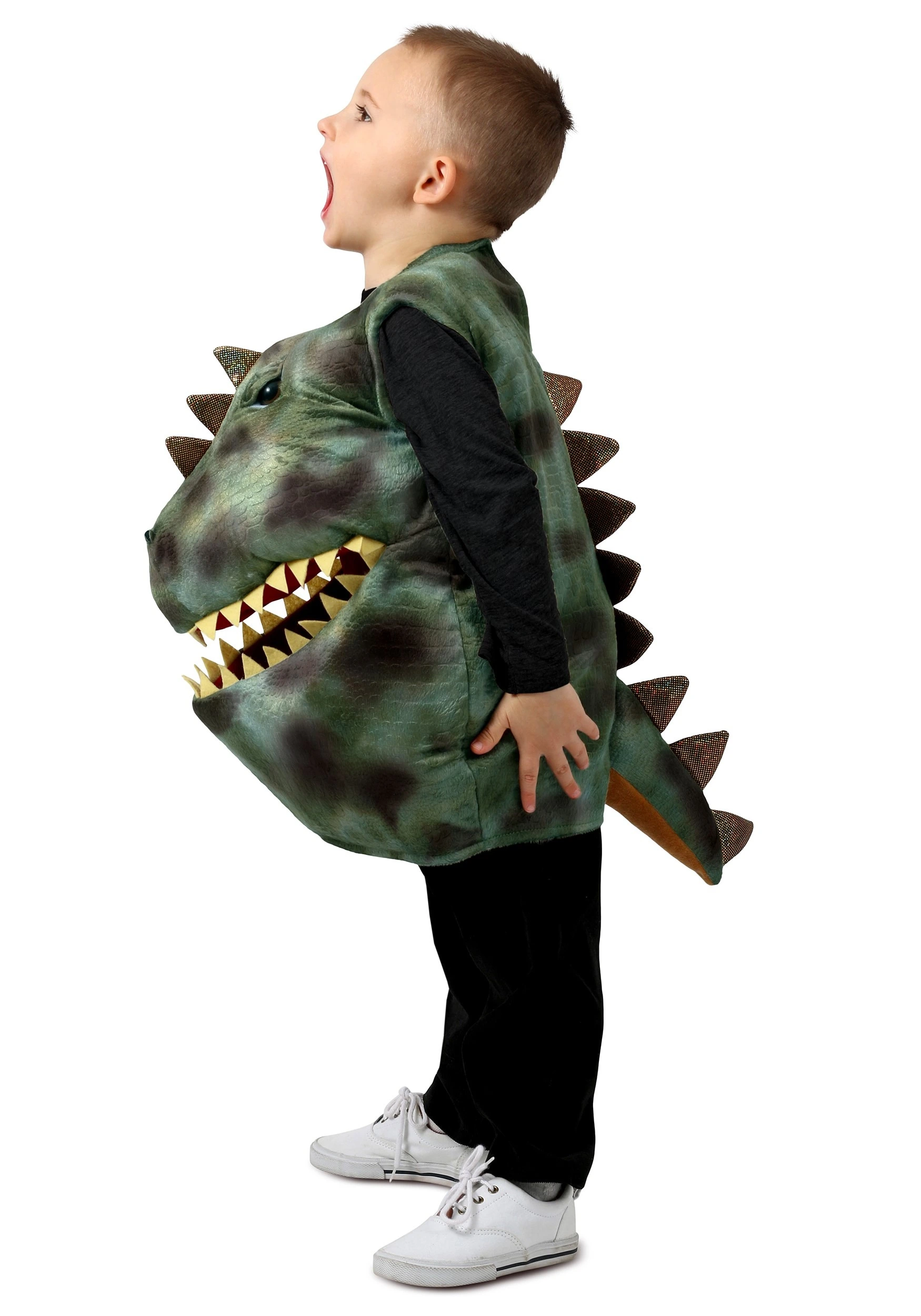 Your little monster will enjoy Jurassic-sized fun in our Kid’s Feed Me Dinosaur Costume! Channeling a T-Rex sure works up a kid’s appetite. Keep a sharp eye on your chocolate bars and gummy worms because this dino is HUNGRY!