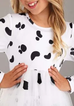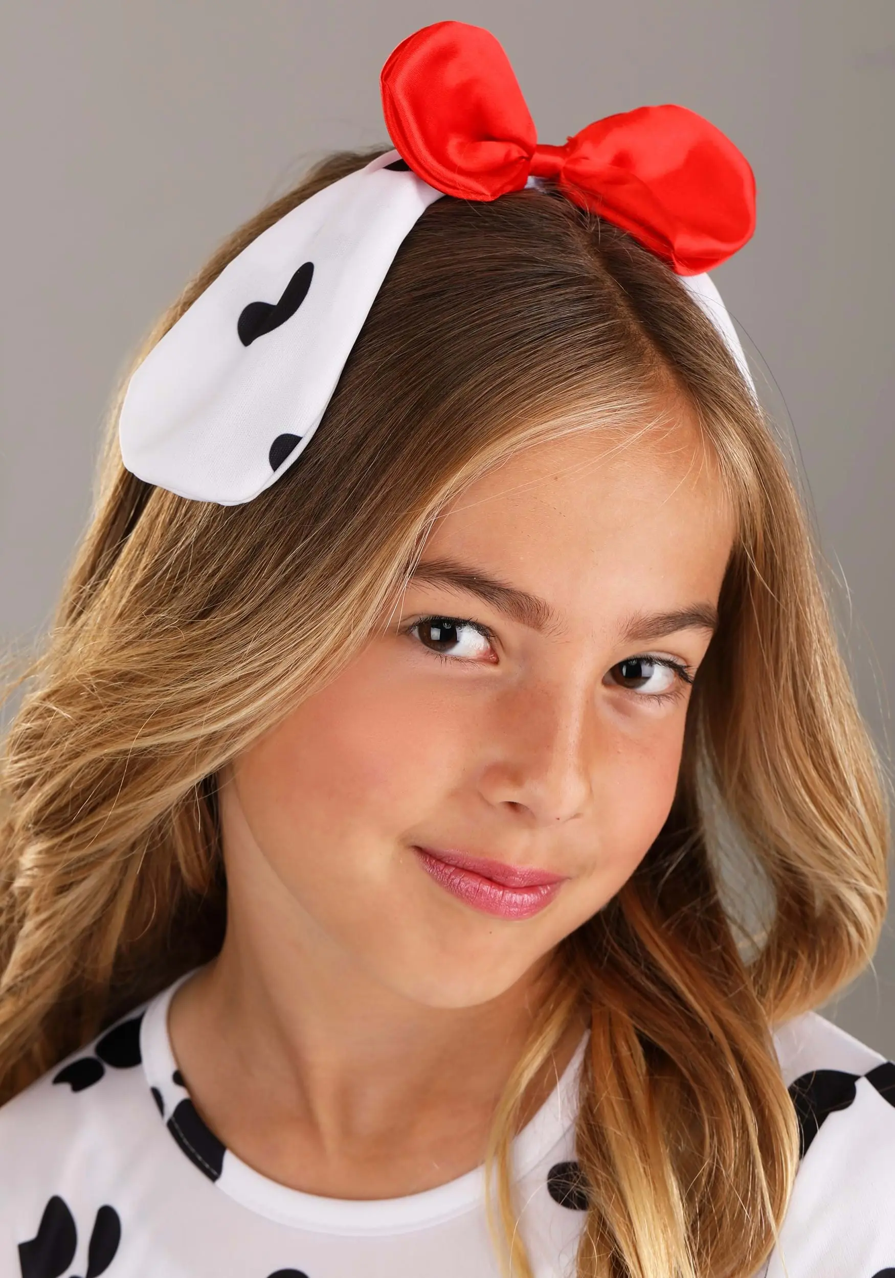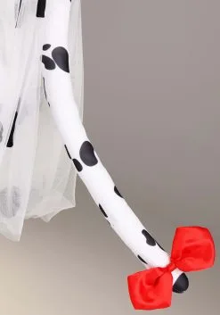 If you love dogs of all kinds, you’ll love dressing up in this exclusively designed Adorable Girl’s Dalmatian Costume! The costume includes the sweetest dress made from white material speckled with a black spot pattern. The top is long-sleeved and the white-and-black-spotted skirt ends at mid-thigh. It’s overlaid with a layer of sheer netting for an extra sprinkling of style! A perky puppy tail is sewn to the back of the skirt and is decorated with a red bow. The outfit comes with leggings and an adorable headband that features a red bow between two floppy Dalmatian ears.