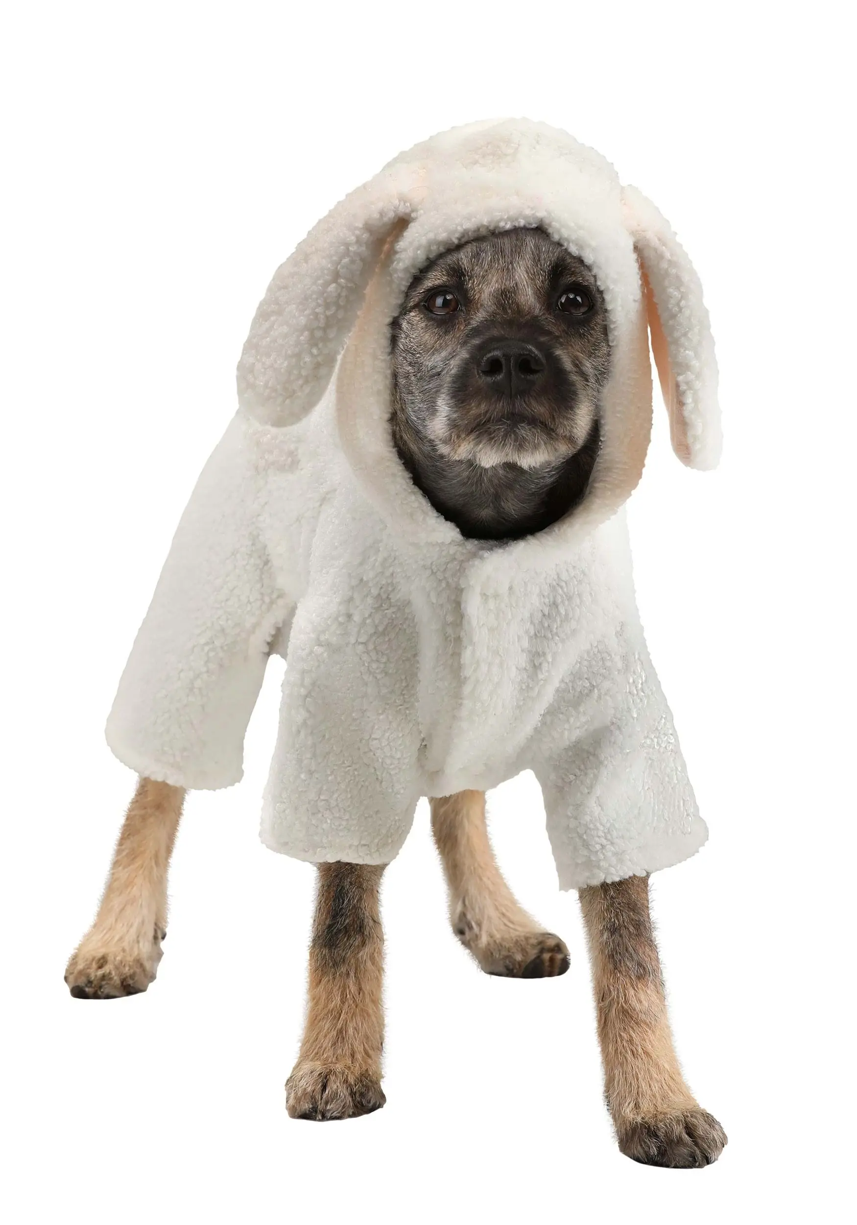 Now you can prove to everyone that your puppy’s baa-rk is worse than their bite when you put them in our Sheep Dog Costume! This wooly suit is an easy, all-in-one outfit for your puppy pal. The bodysuit has an attached hood with floppy ears and closes at the chest with hook and loop fastener. Openings for each leg and one at the back of the neck for collar access make this costume comfy to wear. Your pup will never be cuter and cuddlier than when they wear this adorable sheep suit!