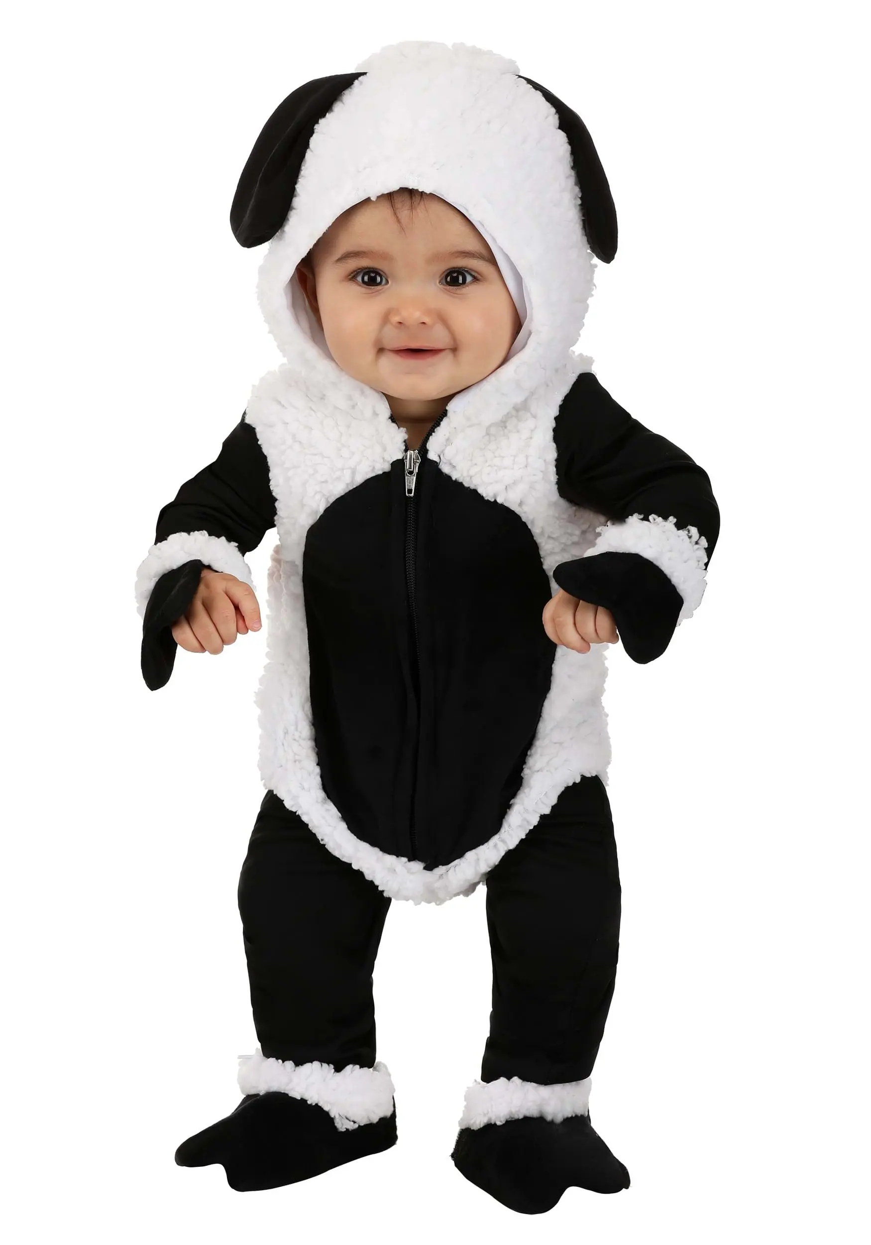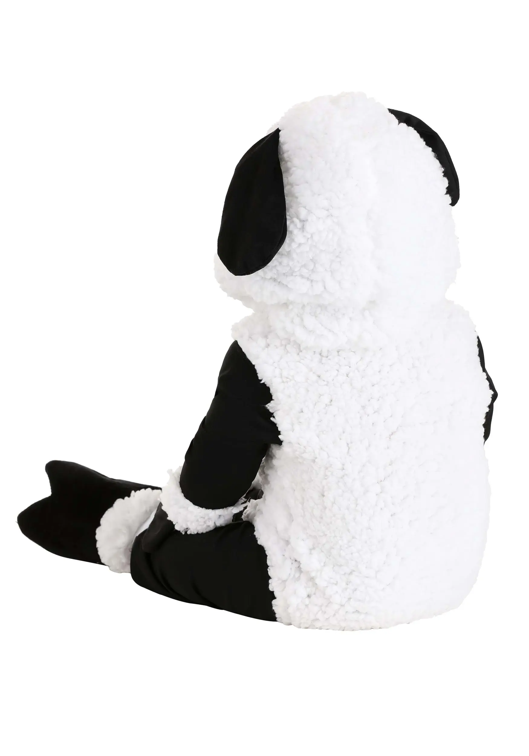 - White chunky plush hooded body piece has black faux suede front, jersey sleeves